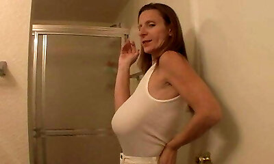 Hot and slim Gerrman lady pleasing a stiff pink cigar in the bathroom