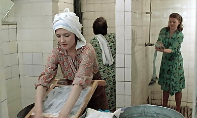 Retro fuck-fest video with a hot big-chested girl peeing and taking a bath