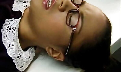 Insatiable and delicious brunette babe with immense boobies