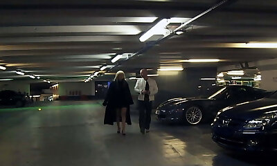 Sexy blonde Summer Day loves classic cars and big black spunk-pumps