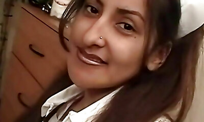 Dark-hued nurse gets warm cum on her perfect face
